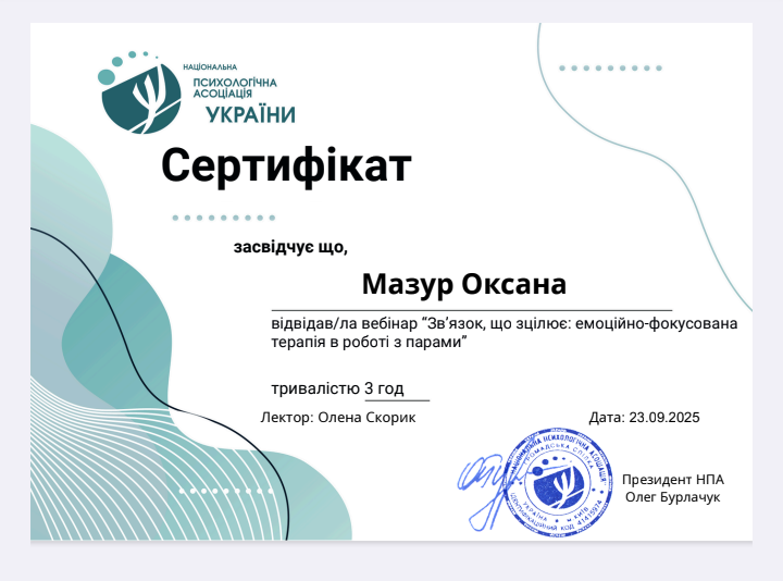 Вебінар“Зв’язок, що зцілює: емоційно-фокусована терапія в роботі з парами”.